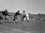 Football. Texas Christian University (T. C. U.)- Baylor action. Charles Conway, Texas Christian University (T. C. U.) carrying the ball.
