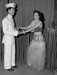 W. C. Stripling Junior High School is putting on an operetta, "Love Pirates of Hawaii." Staring in the production, left to right, are Swayne Cummings and Jennie Beth Hearne. They are shown wearing their costumes during a dress rehearsal. Mr. Cummings is playing the role of a naval officer. Miss Hearne is playing a native Hawaiian. The Parent-Teacher Association (P. T. A.) is sponsoring the event.