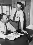 M. H. Huffman, seated, resident engineer from Denison district, and his chief clerk, B. T. Howell, standing.
