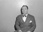 Ronald A. Rhodes, Star-Telegram artist, is sitting and wearing a lighter colored suit and polka dot bow tie.