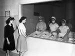 Fort Worth Hospitals. Open house. Miss Billie Geron and Mrs. Jack Dunlap looking at babies in nursery at Harris Memorial Hospital.