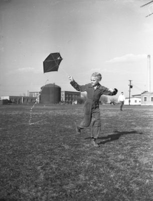 On the first day of Spring and the start of "kite season" out at Masonic Home. One of the first Masons to get his kite built was Arnie Feeler. Here's 8-year-old Arnie trying it out, running into a brisk breeze.