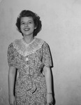 Here is Miss Ellen Marie Gallagher, who will help open Hemphill Street on Friday night as part of the entertainment program. Hemphill Street recently underwent construction in order to be widened. Miss Gallagher wears a printed dress with a mesh collar and decorative buttons.