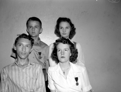 American Legion award winners. Left to right, front row, Jimmie Ciffen and Virginia Anderson. Back row, Charles Cook and Betty Jean Arnold.