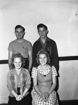 Technicial High School play cast members are Bill Hogue (standing, left), Bobby Rhodes (also standing) Jackie Linn (seated, left) and Jacqueline Bates.