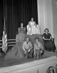 McLean Junior High School. Play casts. Elaine Mayfield, sitting on throne. Seated at the left is Gloria Fowlkes and at the right is Hillis Wise. Roy Kelley and Clifford Taylor, kneel in front of the throne. The above students appear in the William James Junior High School play.