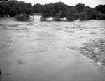 Flood Scenes in Fort Worth, Texas. The spreading Clear Fork of the Trinity River rolls over University Drive in Forest Park.