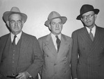 Riverside Civic League holds its "Old Timers Jubilee" at Amon Carter Riverside High School. Three leaders of Riverside Civic League are pictured here. They are, from left to right, G. Lester Fleming, Roland McGinnis and W. I. Browning, all of Fort Worth. The three men are shown standing side by side against a bare wall and facing front. All are dressed in suits and ties and hats. Published in the Fort Worth Star-Telegram morning edition, May 22, 1942.