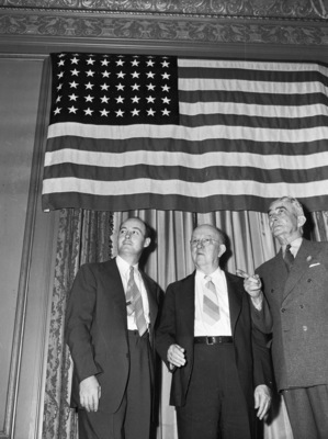 Group portraits; Flags; Banquets