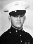 Father's Day. Copy of a photograph of Corporal Pete H. Gray, Marine, stationed in Pearl Harbor. "A father meets his 'sons'- W. C. Gray, 315 East Weatherford Street, with two sons in the Marines and one a Japanese captive, visited the United Service Organizations headquarters at Hotel Texas Saturday evening to get acquainted with the trio of soldiers who will visit in his home Father's Day." Corporal Gray, pictured, is the actual son of W. C. Gray, but he is unable to see his father on Father's Day due to his military commitment. Instead, a trio of other soldiers will perform this duty for him. Corporal Gray is wearing his uniform with his hat slightly tilted to the side.