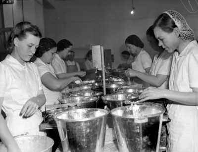 Women breaking eggs at the Texas Dehydration Products Company.