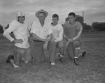Masonic Home football, Coach Rusty Russell with Grant Finnigan, Ray Musslewhite, and Gene (Chicken) Roberts