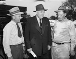 Davis Hampshire Sale at Sherman. Left to right, Harrison Davis, breeder of sheep, Earl Gartin, Indiana auctioneer; and Joe Dixon, shepherd at the Davis farm.