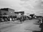 Mansfield Pioneer Jubilee. Mayor and Mrs. W. S. Lamb, leading the parade on horseback, with District Attorney Brown behind them.