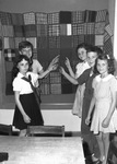 Fourth grade students at the newly built Sagamore Hill Elementary School are proudly pointing to the afghan they made. Front to back, on the left, are Patricia Brandt and Jere Collier. On the right are Sue Miller, Homer Pirkle and Laura Ann Vickers. This is the second afghan the students completed. They worked on the project after their regular class periods. Published Fort Worth Star-Telegram Evening Edition June 1, 1942.