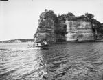 Possum Kingdom Lake. Speedboat going through entrance at Hells Gate.