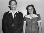 Blackstone Legion Post entrants George W. Hewitt, sixteen year old son of Mr. and Mrs. Peter R. Hewitt and Miss Janice Laine, seventeen year old daughter of Mr. and Mrs. Craig Laine. Both are seen standing side by side in front of a wall. Blackstone Post American Legion, and its auxiliary, Blackstone Unit, Saturday announced their entrants in the Lone Star Boys State and Blue Bonnet Girls State, major Americanism projects of the organizations.