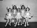 Recreation Department. Spring Recital. Left to right, Lynell Burns, Marion Evans, Ina Lee Tucker, Sue Lynn Humphreys, Mary Katherine Winder and Marilyn Dorn, seen in their dresses with bow's in their hair and feet, standing in a pose.