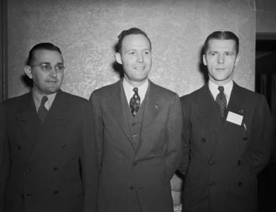 Among officials present at the opening of the annual convention of Region 5, Texas Junior Chamber of Commerce, at the Blackstone Hotel were left to right, Dick Hughes, Pampa, a national director; Hugh Owens, Oklahoma City, a national vice president; and Binford Arney, of Amarilllo, a regional state vice president.