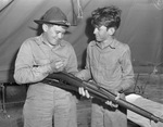 Tommy Seymour (left) and Bill Meeker cleaning rifles - R. O. T. C. Cadets at Camp Dallas, 06/10/1942.