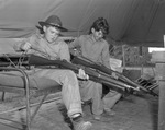 Tommy Seymour (left) and Bill Meeker cleaning rifles - R. O. T. C. Cadets at Camp Dallas, 06/10/1942.