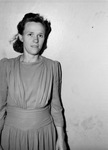 Mrs. H. L. Young, having just sent off her youngest son to the Nation's Armed Service to join his three other brothers. "It was an old story Monday for Mrs. H. L. Young, of 1909 Irma Avenue, as she watched her youngest son, Billy Ray, 17, leave for the Coast Guard Training Station at Algiers, Louisiana. Three other sons are already in military service. In addition to her sons, Mrs. Young has three brothers in the service. Asked what she thought about the situation, Mrs. Young replied: 'Of course I worry about them and pray they'll be safe, but I'm glad and proud they've gone to fight, just as they are.'" Mrs. Young is standing against a wall wearing a light-colored dress. She is wearing her dark curly hair up, although a few stray strands have wrestled their way free, and she is looking sternly into the camera with her dark eyes. Her hands are to her side.