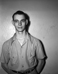 Sam Paschal, DeMolay officer. "Officers of the Fort Worth Chapter, Order of De Molay will be installed at 7:30 PM Sunday at Glen Garden Country Club in a public ceremony. Here is Sam Paschal, junior councilor. De Molays and their dates will hold a swimming party after the ceremony." Mr. Paschal is wearing a short-sleeved medium-toned button-up shirt, a belt, and slacks. He is holding both his arms behind him and he is gazing off to the side.