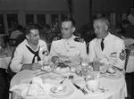Texas Pharmaceutical Association convention. Left to right, Leo J. Babin, Pharmacists Mate, Second Class, Dallas, Texas, Lieutenant Commander C. P. Hungate and Lloyd V. LaValley.