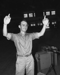 Dunlap, Wayne (Pvt.); Musicians; Conductors; Music stands; Emergency Relief Show; Bands; Texas Christian University Band; Fort Wolters (Tex.)