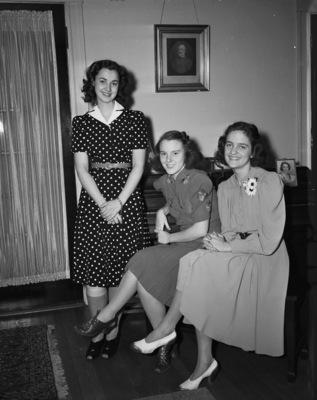 Students; Taylor, Perry E. (Maj.); Taylor, Perry E. (Mrs.); Notre Dame des Siences; Dresses; Brooches; Taylor, Faith Virginia (Miss); Owens, Betty June (Miss); Koenig, Eleanor Carroll (Miss)