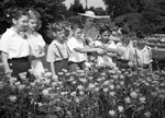 Studying flowers are (left to right) Helen and Ellen Hausman, Tommy Jackson, Bobby McKibben, Mrs. C. A. Gantt, Billy Sitton, Morris Reinhardt and Charles Ray Sitton.