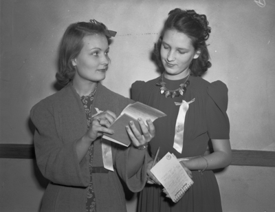 Two of the attractive pages at the Woman's Christian Temperance Union in Texas, in Fort Worth for a two-day regional conference were Left to right, Lila May Banks and Elaine Daniel.