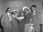 Directors appear to be pleased with the program arranged for the day for the convention of the Texas Music Teachers Association at Hotel Texas. Standing, left to right are Archie N. Jones, University of Texas; Miss Meta Hertwig, San Antonio, Texas; E. Clyde Whitlock, Fort Worth Conservatory; Mrs. Mary Stuart Edwards, San Antonio, Texas; and Thomas Gorton, University of Texas. Published in The Fort Worth Star-Telegram Morning Edition June 24, 1942.