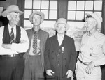 Left to right, Arthur E. Young of Burkett, Walter E. Johnson of Fort Chadbourne, J. H. Boatwright of Mangum, Oklahoma, and Fred Cutberth of Cross Plains at Stamford Cowboy Reunion.