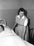 Mrs. Tom S. Payne, nurse helper, making bed.