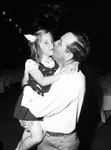 An unidentified man holds an unidentifed young girl and kisses her on the cheek at Raymond Buck's birthday party.