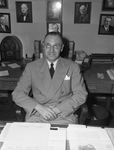 Francis V. Thomson, executive director of Fort Worth Community Chest, has been selected as director of the War Chest drive, a combined appeal for 12 war relief groups and the Community Chest, representing 26 agencies. He is a veteran of 30 years' experience in social welfare work, Thomson was made executive director of the Community Chest in April 1939. He has directed three Community Chest campaigns, two of which have been over-subscribed. He came here from Chicago in 1934 to become director of the Panther Boys' Club. Before coming to Fort Worth, Thomson was engaged in boys work at Chicago, New York and Washington, D. C. In this picture, Mr. Thomson is sitting at a desk. Behind him is a table with a radio, books, and a wall full of portraits of men. He is wearing a light colored suit and eyeglasses. Published in the Fort Worth Star-Telegram morning edition, July 16, 1942.