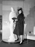 Mary Lou Koerner models a mink coat.