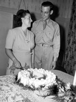 Corporal and Mrs. Jon Frisby cutting their wedding cake.