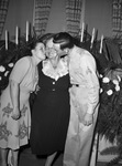 Corporal and Mrs. Jon Frisby kissing Mrs. W. C. Pool.