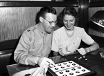 Captain D. A. Isermann and Miss Elizabeth Roskopf choosing a wedding ring.