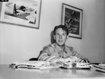 Actor and Army Lieutenant Burgess Meredith at his desk.