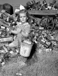 Tin Can Salvage program. Carole Ann King of Everman, donating to tin salvage pile.
