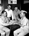 Thirteenth Armored Maintenance Battalion. Volunteers. Captain Byron A. Shotts, left, signing up trio of volunteers, left to right, Chester C. Martin, Earl Hurley and Eddie Dunn.