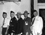 American Legion convention. Left to right, Wyatt Lipscomb, Albany; Tom Craswell, Abilene; R. S. Stephens, Abilene; Clyde White, Baird, and Kelley Farrar, Breckenridge.