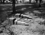 Grave markers that have been disturbed by vandals at Arlington Cemetery, Arlington, Texas.