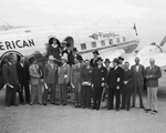 A group of men stand outside an American Airlines plane. Amoung these men is Amon Carter.