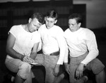 Technical High School football Coach Weldon Lucas (left) with Harry Hamilton (center) a running back. Unidentified man on right.