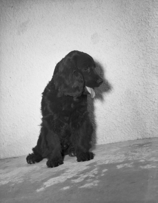 Rebel Rambler, black cocker spaniel puppy owned by Dwight Dobson, will make his first appearance in a dog show Sunday when he is shown at the Spring Specialty Show of the Fort Worth spaniel cubs and the Southwestern Dachshund Club at Pioneer Palace.