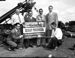 Scrap Metal Campaign. Left to right, Dan Gachman, S. Freundlich, J. Gachman and Dave Klimist, Tom B. Petty and L. E. Robinson, representatives of scrap dealers who accepted who a War Production Board merit award.